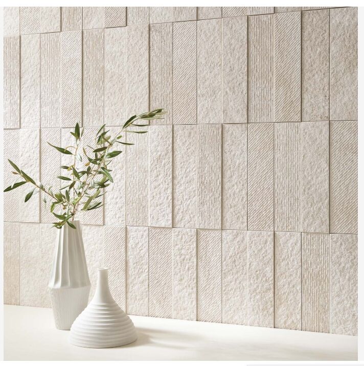 砂岩の優雅な流れ模様にライムストーンの粒状の柄を融合させたデザインです。